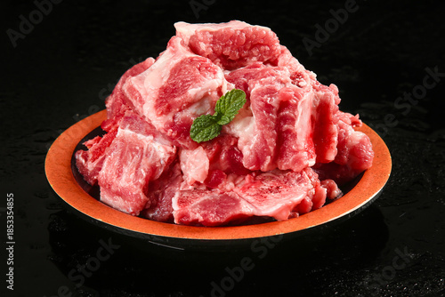 Fresh Raw Pork Ribs High Quality Meat on Black Background