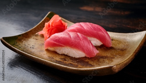 fresh tuna nigiri on a rustic plate