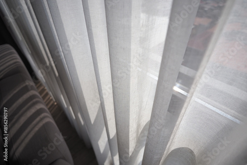Light shining through sheer curtains in a room
