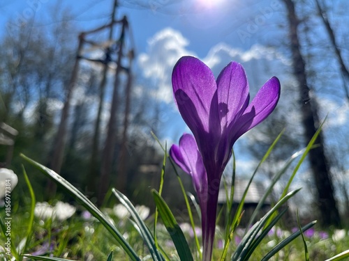 Krokus z perspektywy na tle nieba