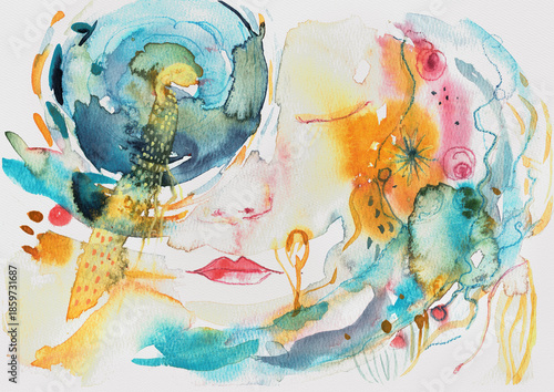 Abstract Figurative Watercolor Portrait with Organic Shapes and Expressive Color