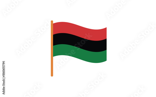 Pan-African flag vector illustration featuring red black and green horizontal stripes on a wooden flagpole.