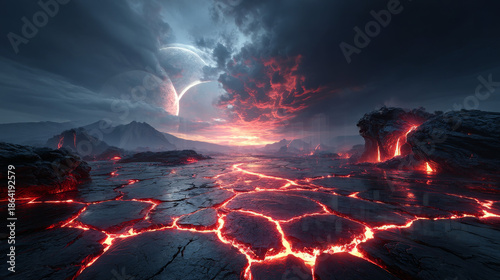 Molten Lava Texture Background. Burning Floor - Armageddon or Hell Concept. 3D Render. 3D Illustration.