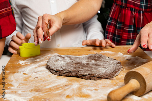 mama z dzieckiem wspólnie robią ciasto na pierniki