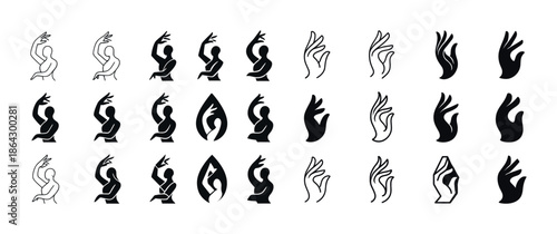Abstract hand gestures collection: minimalist black and white gr