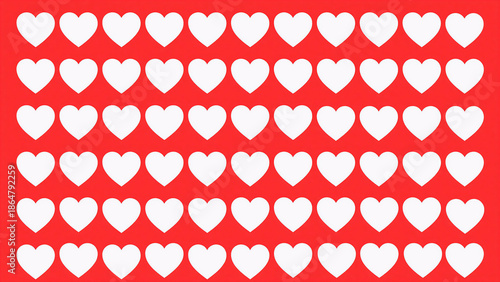 Symetrycznie ułożone białe serca na czerwonym tle, tapeta walentynkowa, papier do pakowania prezentów, naklejki