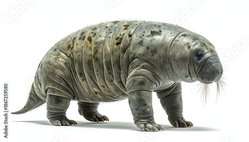 A prehistoric, reptilian-mammalian hybrid with whiskered snout & spotted hide