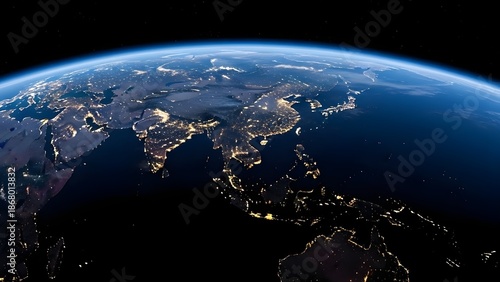 Earth at Night from Space Showing Asia and City Lights