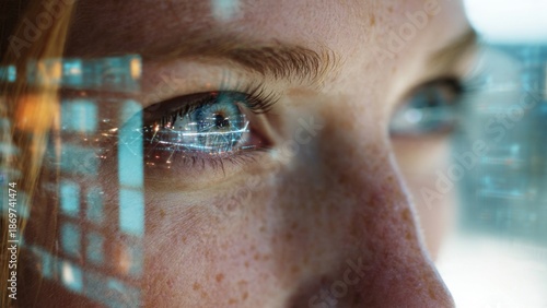 Person engaging with invisible augmented reality interface close-up portrait digital environment focused viewpoint