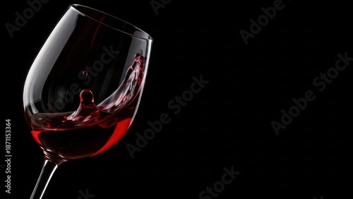 A close up of a glass of red wine being swirled against a dark black background highlighting motion and elegance