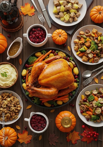 Thanksgiving Roasted Turkey Dinner with Colorful Vegetables and