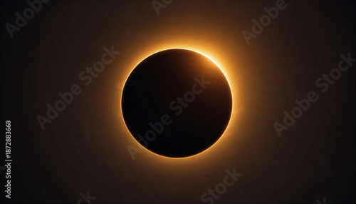 Całkowite zaćmienie słońca z ognistą koroną, ciemny księżyc na tle świecącej tarczy słonecznej