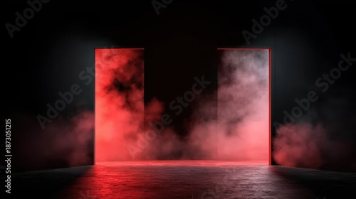 Stage backdrop featuring opening lights and smoke for a grand entrance, perfect for awards show graphics, conference openings, or powerful and atmospheric design projects.