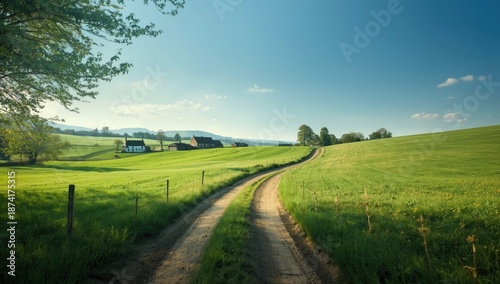 Country lane with a distant village, highlighting rural development and accessibility challenges