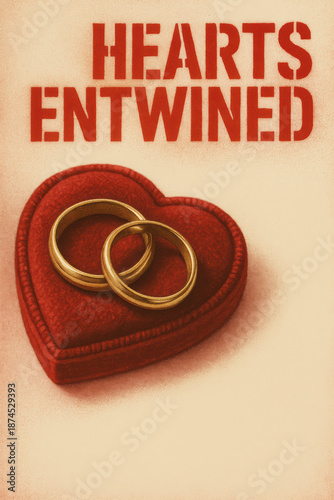Valentine's Day proposal with entwined gold rings in heart box