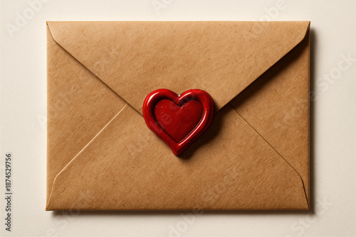 Valentine's Day love letter sealed with a red heart on brown envelope
