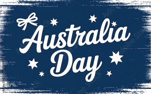 Australia Day Text on Blue Background with Stars and Ribbon