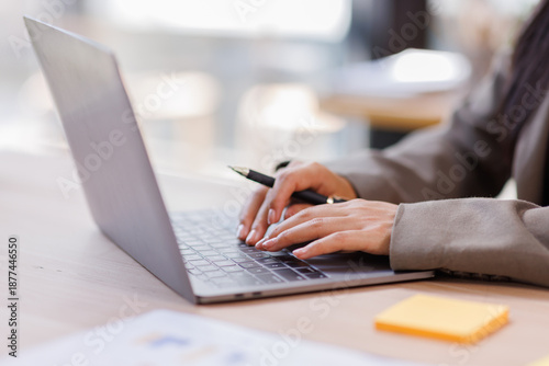 Fast checklist and clipboard task management.Business working on laptop computer productivity checklist and filling survey form online Document management concept .