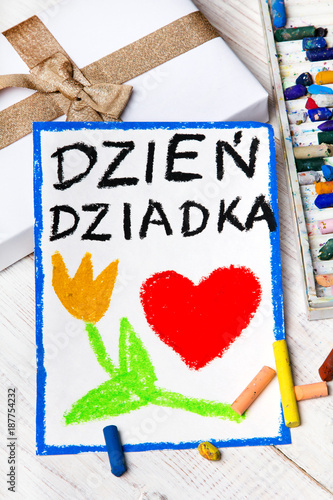 Laurka z okazji Dnia Dziadka. Rysunek, kredki i prezent.