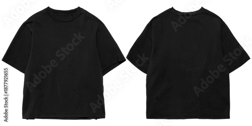 Front and back black oversized boxy tshirt mockup, transparent background