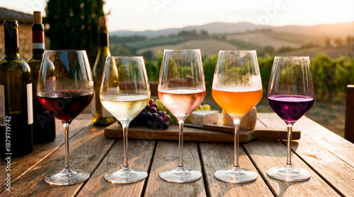 Wine tasting experience in a vineyard at sunset