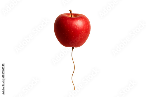 Red Apple Floating Like a Balloon on transparent Background