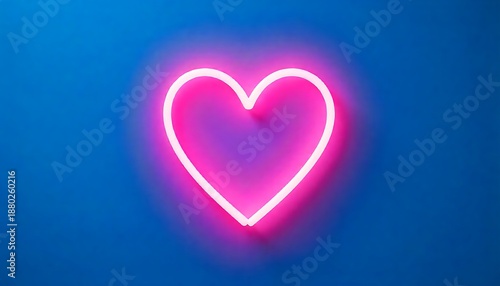 A vibrant pink neon heart glowing brightly against a rich blue background, symbolizing love