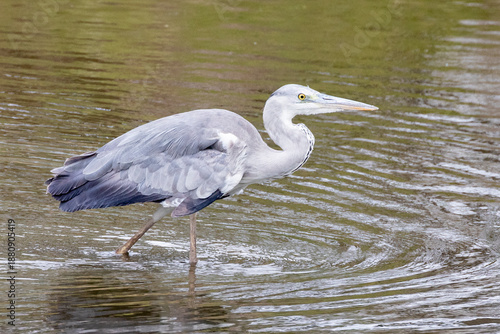 Grey Heron (Ardea cinerea) fishing in river, Limpopo, South Africa, side view