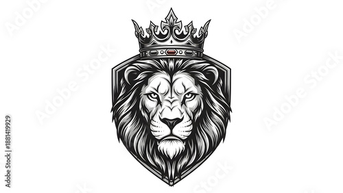 A powerful lion head wearing a crown symbolizing royalty and strength