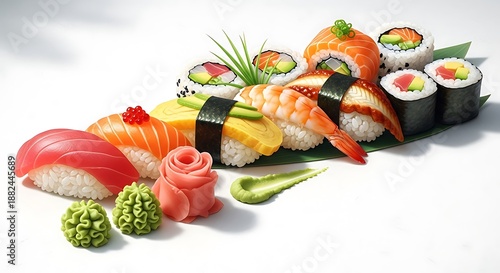 Exquisite Assortment of Freshly Prepared Japanese Sushi Rolls and Nigiri, Artfully Arranged for a Gourmet Culinary Experience