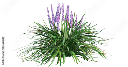 Variegated Liriope Lilyturf with Purple Flower Spikes Isolated on transparent Background