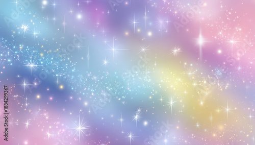 虹色のグラデーションと星屑が煌めく幻想的なファンタジー背景素材