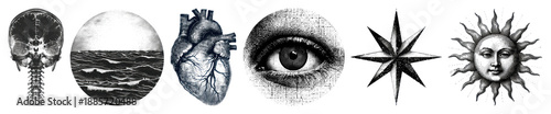 PNG Vintage celestial and anatomical illustrations, element set on transparent background