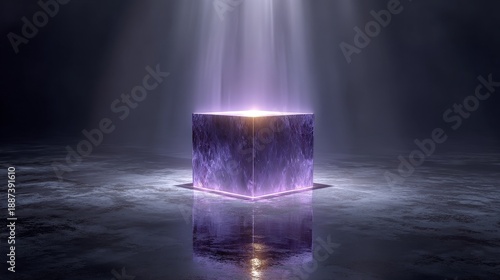 Purple box glowing with radiant light beams, mystical and dramatic ultra-realistic cinematic scene with soft highlights and shadows
