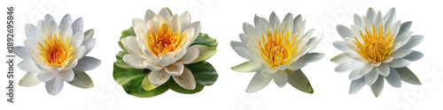 Zestaw Białych Lilii Wodnych w Różnych Fazach Rozkwitu, Izolowanych na Przezroczystym Tle