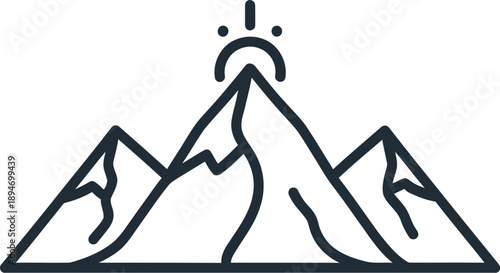 Simple line art illustration of mountains with a shining peak on white background