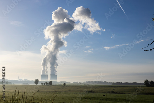 Temelin nuclear power plant generating steam over fields