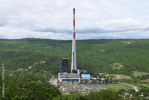 Elektrownia cieplna, komin elektrowni jest najwyższy w Europie, Termoelektrana Plomin na wschodnim wybrzeżu Półwyspu Istria, w Chorwacji, Europa,