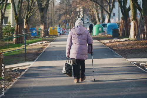 Starsza osoba spaceruje świeżo wyremontowanym chodnikiem