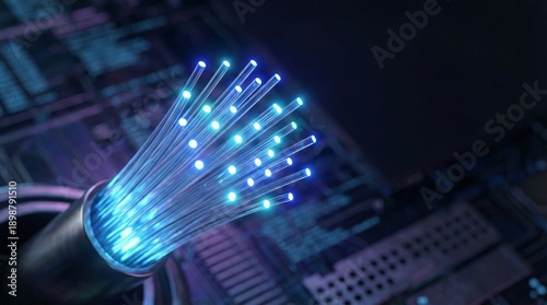 Glowing Blue Fiber Optic Cable Macro Close-Up