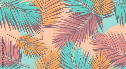 Fondo tropical, coloridas hojas de palma texturizadas, doradas, rosas, verdes. Patrón sin costuras. Ilustración 3d vintage premium dibujada a mano. Papeles pintados de lujo, impresión de telas, mur