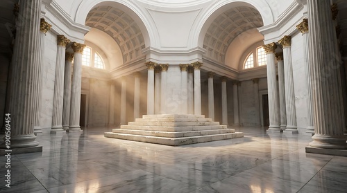 Elegant interior of a grand white marble building with columns