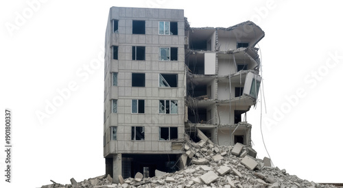 Damaged building with rubble and debris destruction isolated on a transparent background