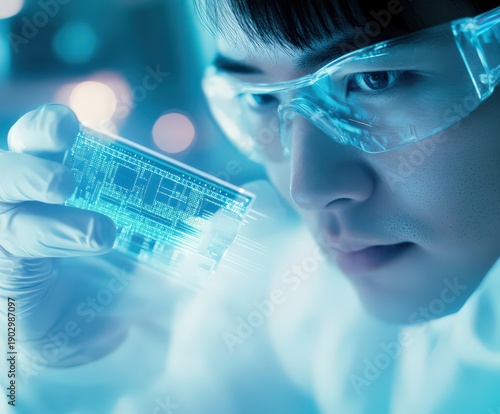 研究者が電子部品を点検