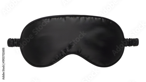 Black satin sleep mask for eye covering during rest or travel, isolated on white background