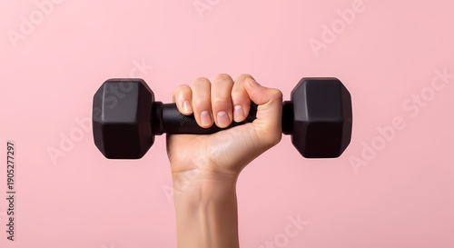 Hand Holding Black Dumbbell