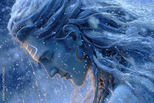 Beautiful cultural illustration capturing the moment the sacred Ganga falls upon Shiva's head. Perfect for educational content about Asian mythology, yoga studios, and spiritual decor.