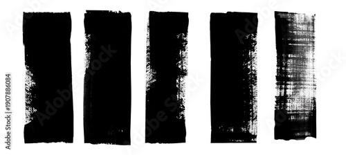 Set of grunge vertical rolled ink stamp textures with brayer. Letter press vintage rough rectangle shape.. Linocut irregular relief printing illustration isolated on transparent background