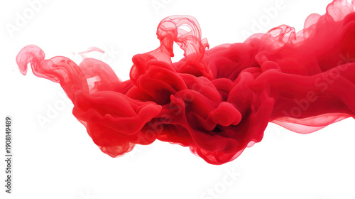 A vibrant red ink cloud suspended in water on transparent background