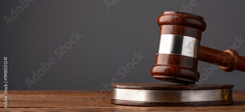 Judge's gavel on the wooden table